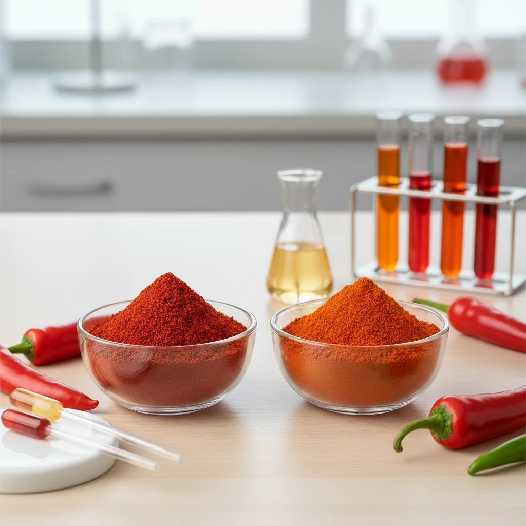 Los carotenoides determinan los parámetros de color del pimentón. Su contenido varía por variedad, condiciones de cultivo (temperatura, luz, suelo) y estado de madurez [5,6], así como por prácticas pre y poscosecha [7,8]. En pimientos rojos se presentan libres y como mono/diésteres con ácidos grasos; esta esterificación puede modular su estabilidad térmica/oxidativa y biodisponibilidad [9–11].